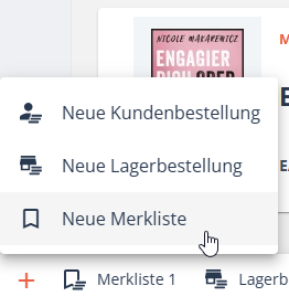 Mit Merklisten stehen Ihnen viele Möglichkeiten zur Verfügung. Bei Anfragen von Kund*innen kann einfach darauf zugegriffen, beraten und Kundenbestellungen erstellt werden. Gleichzeitig können Lagerbestellungen für Büchertische vor Ort einfach erstellt werden.