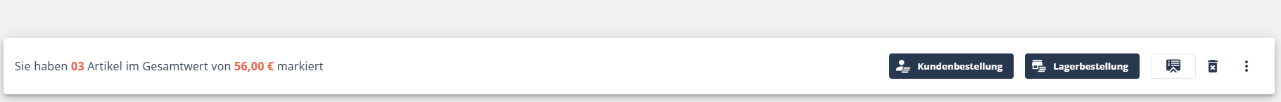 Sobald eine Checkbox angewählt ist, erscheint eine Fußleiste, in der angezeigt wird, wie viele Artikel mit Gesamtwert markiert sind.
