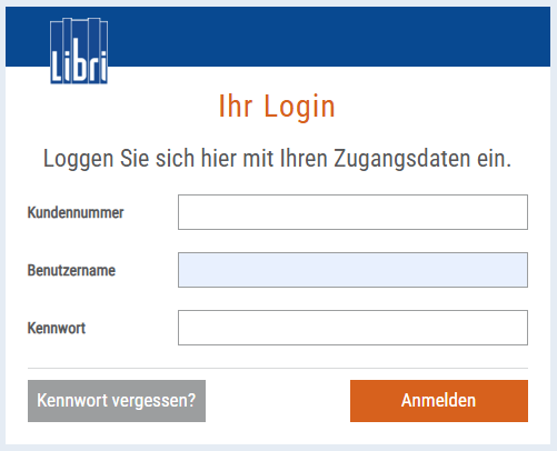 Geben Sie Ihre Zugangsdaten (Kundennummer, Benutzername und Passwort) ein, die Sie von unser Neukundenabteilung erhalten haben. Nach der ersten Anmeldung werden Sie aufgefordert, Ihr Passwort zu ändern. Dieses muss mindestens acht Zeichen umfassen und Klein- sowie Großbuchstaben, Zahlen und Sonderzeichen enthalten. Sie können „Mein Libri“ unmittelbar verwenden, nachdem Sie unsere Datenschutzerklärung, Nutzungsbedingungen sowie die aktuellen Liefer- und Zahlungsbedingungen akzeptiert haben.