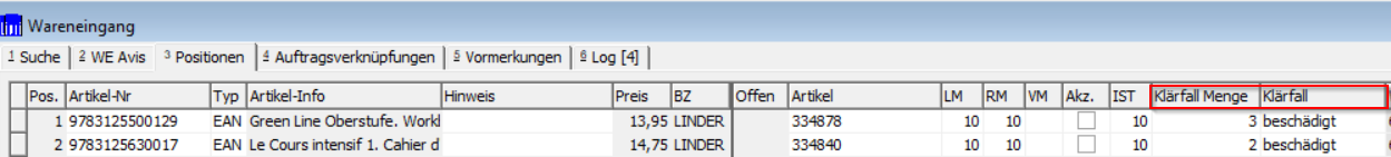 Mit den neuen Feldern können Sie "Klärfälle" wie beschädigte Exemplare oder Mengenabweichungen direkt und manuell erfassen. Diese flexible Eingabemöglichkeit erlaubt es Ihnen, Unstimmigkeiten sofort zu vermerken, wenn Sie sie bemerken. Dadurch erhöhen wir die Transparenz im Lieferprozess und ermöglichen eine effizientere Problemlösung.