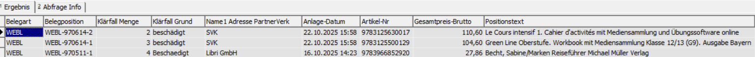 Für die Auswertung wurden 2 neue Abfrage Idents bereitgestellt, die in Belegabfragen verwendet werden können
