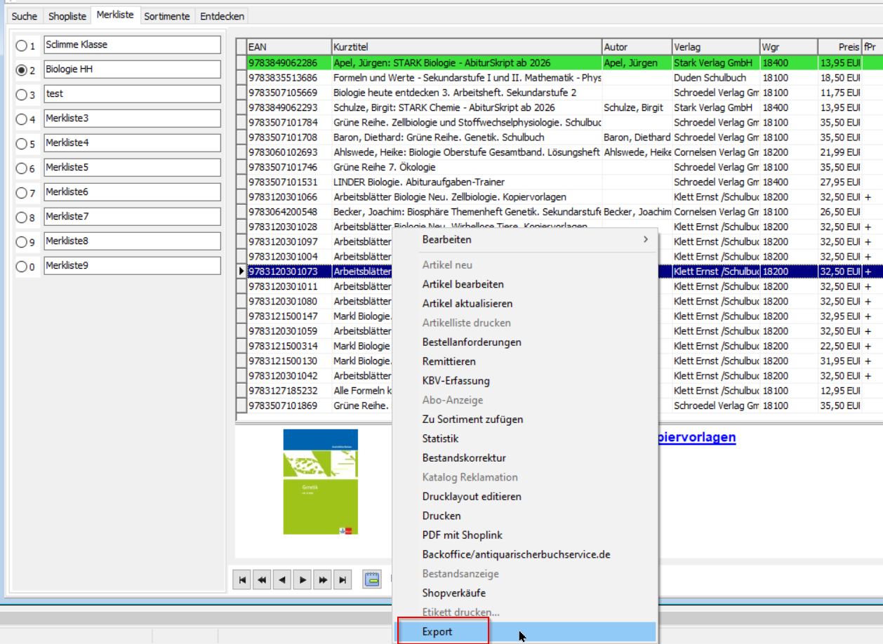Bei längeren Titellisten müssen Sie vor dem Export einmal bis zum Ende der Liste scrollen, damit alle Titel übernommen werden.