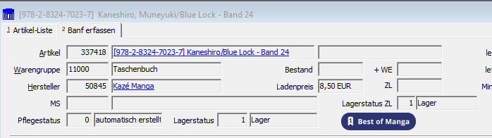 Auf der Bestellanforderungsmaske (Banf-Maske) wird nun auch der Chip für FirstChoice Titel von Libri angezeigt. Diese Funktion bietet Ihnen bei der Bestellung zusätzliche Informationen, sodass Sie optimal informiert Ihre Dispo Entscheidung treffen können.