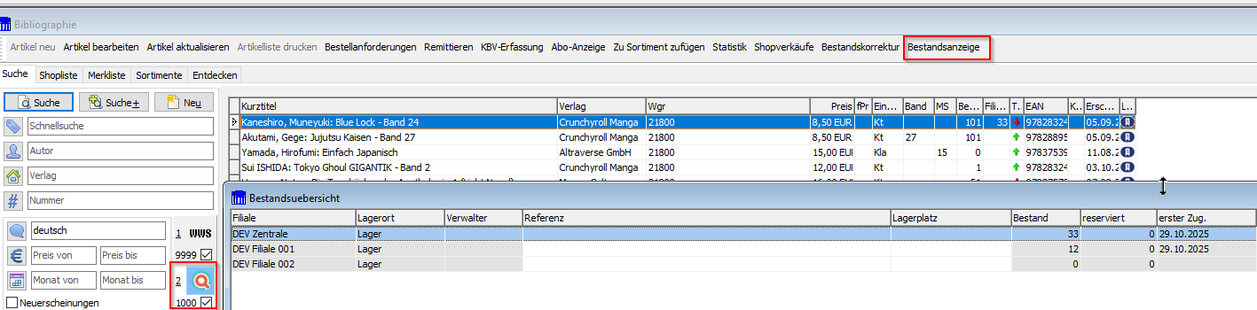 Rufen Sie nun auch direkt aus dem Quimus Suchergebnis Ihren Filialbestand auf. Wir arbeiten hier an weiteren Verbesserungen.