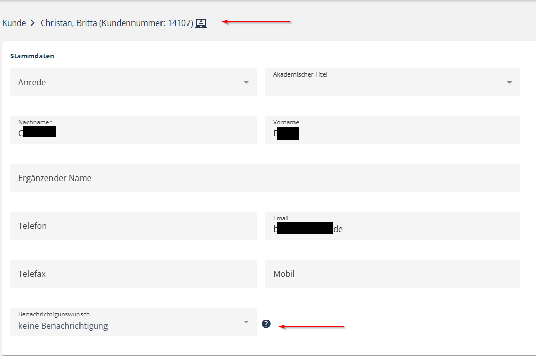 Ist dies nicht der Fall, legt Quimus ein neues Kundenstammblatt mit Vor- und Nachname und Mailadresse an.