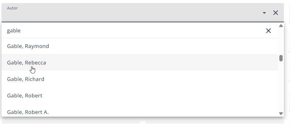 Bei Autor, Reihe, Sprache und Verlag können Sie genau festlegen, welche Artikel in der Suche eingeschlossen sein sollen. Statt z.B. nur nach Gable im Suchfeld zu suchen, können Sie mit "Gable, Rebecca" bei Autor schon alle anderen Autoren und Artikel mit diesem Wort ausschließen.