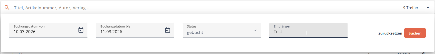 Bei der Suche mit dem Remissionsdatum beachten Sie, dass es technisch nicht möglich ist, das "Buchungsdatum von" und "Buchungsdatum bis" mit dem gleichen Datum zu suchen. Bitte wählen Sie immer Daten aus, die mindestens zwei Tage umfassen. Nutzen Sie gerne die Kalenderfunktion neben den Feldern.