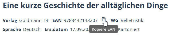 Möchten Sie die EAN kopieren, können Sie einfach auf das Symbol mit den zwei übereinanderliegenden Blättern klicken, die Nummer wird dann zwischengespeichert.