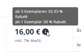 Das kleine I neben dem Preis zeigt die Rabattierung bzw. Rabattstaffelung an.