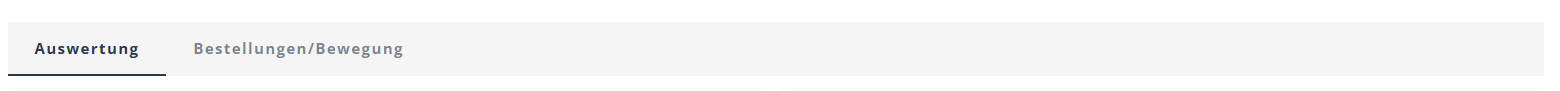 Im unteren Bereich sehen Sie zwei "Reiter", "Auswertung" und "Bestellung/Bewegung".